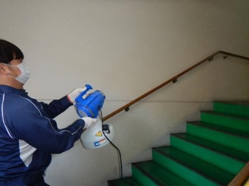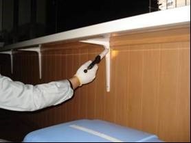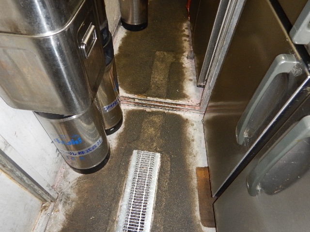 ハードフロア(Pタイル・フローリング等)の清掃 カーペット清掃 厨房床清掃 パントリー床清掃 ガラス清掃 エアコンフィルター・カバー清掃 グリーストラップ清掃 排水管清掃 厨房排気設備清掃 空調設備清掃 冷蔵庫熱交換器清掃 害虫(ゴキブリ)駆除 バイオプロテクトシステム90施工 施工事例 ハードフロア(Pタイル・フローリング等)の清掃 基本的に床面に塗布されているワックスについた汚れを表面洗浄し、ワックスの汚れを除去した状態から更にワックスを塗布します。また、黒ずみなどが発生し著しく見苦しい状態のときには剥離洗浄を行い、古いワックスをすべて取り除いた後に新たにワックスを塗布します。テラコッタなど、素材・場所によってはワックスを塗布せずに、洗浄のみを実施する場合もあります。 Pタイル床清掃 清掃前 清掃後 フローリング床施工 施工前 施工後 木床清掃 清掃前 清掃後 ワックスなし カーペット清掃 ドライバキュームによりゴミ・埃等を除去した後に、洗剤を散布しポリッシャーにて洗浄を行いエクストラクターにてリンス剤をスチームし同時に汚水回収をし、乾燥させます。なお、カーペットの種類によっては、ポリッシャーでの洗浄を行わない場合もあります。 カーペット清掃例① 清掃前 清掃後 カーペット清掃例② 清掃前 清掃後 カーペット清掃例③ 清掃前 清掃後 厨房床清掃 油分に効果的な洗剤を使用し洗浄します。ドライキッチンの場合は、客席ハードフロアと同様のメンテナンスを行います。水を多用する場所なのでワックスは塗布しません。 コンクリート床清掃 清掃前 清掃後 パントリー床清掃 ハードフロアと同様のメンテナンスを行います。 パントリー床清掃 清掃前 清掃後 ガラス清掃 ガラス面の内外および窓枠の清掃を行います。日常ではメンテナンスの難しいテープ跡やガラス面についた煙草のヤニなどを洗浄剤にて除去します。また、店内の仕切りガラスの清掃も行います。 施工中 エアコンフィルター・カバー清掃 空調室内機のフィルターおよびフィルターカバーの洗浄を行います。薬品を使用してフィルターのヤニや埃を効果的に除去します。 清掃例 空調 清掃前 空調 清掃後 フィルター清掃例 フィルター清掃前 フィルター清掃後 グリーストラップ清掃 ゴミ受け籠のゴミ及び表面のスカムの除去を行います。清掃前定期的に作業を実施することによって、害虫の発生、不快な臭い、排水管の詰まりを予防します。 清掃例 グリーストラップ清掃前 グリーストラップ清掃後 排水管清掃 各シンク等~グリーストラップまでの排水管を高圧洗浄機にて洗浄します。埋設配管内は使う度に汚れが付着し、段々と細くなっていき詰まりを引き起こしてしまいます。高圧洗浄で汚れを吹き飛ばし配管内を正常な状態にします。 施工中 排管の中に溜まった油汚れ 厨房排気設備清掃 厨房の排気設備はフードから吸込み排気ダクトを通り排気ファンにより外部へ排出されます。フードの清掃を怠ると溜まった油が下に落ち商品に混入する危険性があります。また、排気ダクトが汚れると中に溜まった油が火災の原因になることがあります。そして、排気ファンが汚れると風量が落ち、排気が不十分になります。その結果、衛生面の問題は勿論のこと、店内に油分を含んだ空気が回り、客席の床がベタつき、空調設備がその空気を吸込むなどして効率低下を招きます。 フード内部清掃 清掃前 清掃後 ダクト内部清掃 清掃前 清掃後 排気ファン清掃 清掃前 清掃後 空調設備清掃 フィルターによりある程度の埃等は取れますが、取りきれない埃等が内部のフィン・ファンなどに付着し、効率低下を招いたり、カビ臭い匂いがしたりします。効率が低下すると、冷え・温まりが悪くなるなどし、水漏れが起こったり、場合によってはいきなり運転が止まってしまうこともあるほか、電気代も嵩んできます。 フィン清掃 清掃前 清掃後 ファン・ドレンパン等清掃 清掃前 清掃後 室外機清掃 清掃前 清掃後 冷蔵庫熱交換器清掃 空調機設備と同様にフィン・フィルターに埃・汚れが付くと冷えが悪くなることもあり、電気代も嵩んできます。 フィン清掃 清掃前 清掃後 害虫(ゴキブリ)駆除 現在ゴキブリの生息が確認されれば、まず即効性のある局部薬剤噴霧で駆除します。その後、持続性のあるベイト剤を塗布し駆除します。即効性と持続性の組合せで、徹底的にゴキブリを駆除します。 薬剤噴霧施工中 ベイト剤塗布施工中 バイオプロテクトシステム90施工 バイオプロテクトシステム90は『バイオプロテクト5000C』という薬剤を静電スプレーであらゆる部分に噴霧し強力に薬剤を固着させ、細菌・ウィルス・微生物を除去。一般的な抗菌剤や除菌剤の効果は長くて1日~1週間程度ですが、90日間以上の持続力があります。効果は処理前と処理後に測定する「ATP拭き取り検査」で確認することができます。施工完了後には施工済ステッカーをお渡しいたします。 薬剤噴霧施工 施工炭ステッカー 施工中
